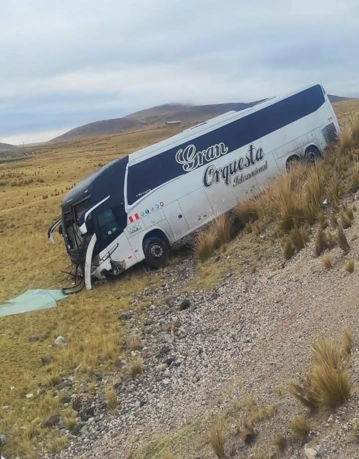 Huayllay. Un accidente de tránsito se registró alrededor de las 4:00 a.m. de este martes en la carretera Canta – Huayllay, en el sector conocido como Cocha Marca, cuando un bus que transportaba a integrantes de la Gran Orquesta Internacional se despistó a un lado de la vía.