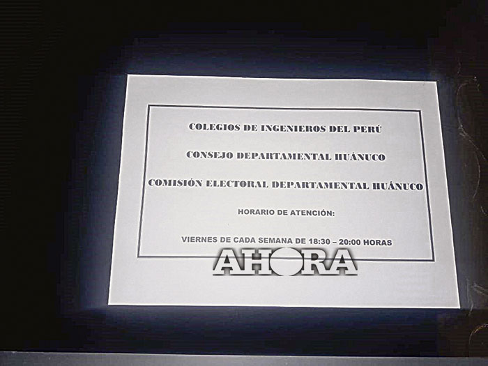 La ingeniera Gladys Nieto Figueredo, en calidad de presidenta de la Comisión Electoral Departamental Huánuco del Colegio de Ingenieros, ha enviado una carta notarial al diario AHORA en relación a la nota periodística publicada el 22 de setiembre de 2018 donde indica que atienden los viernes de 18:30 a 20:00 horas para los fines de las elecciones y que desmienten los calificativos de parcialización en favor del grupo oficialista al haber adquirido hasta siete listas el kit electoral, tal como se insinuó en el referido artículo periodístico.