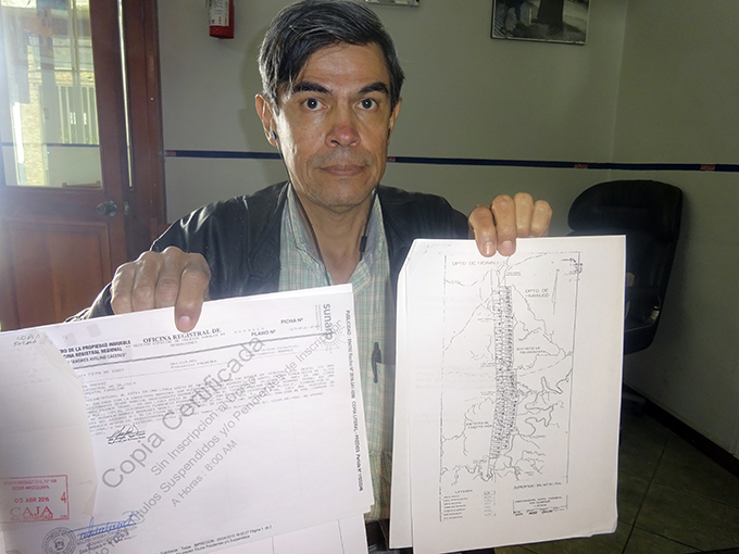 Refirió que el Ministerio de Agricultura, mediante Resolución Directoral nº. 004 del 10 de abril de 1984, entregó a un grupo de 70 colonos, 400 hectáreas a cada uno, predios que no pueden transferirlos ni cambiar su uso forestal. Por lo tanto, agrega, los empadronamientos que está realizando la Dirección Regional de Agricultura para entregar títulos de propiedad a personas que invadieron su predio, es ilegal.