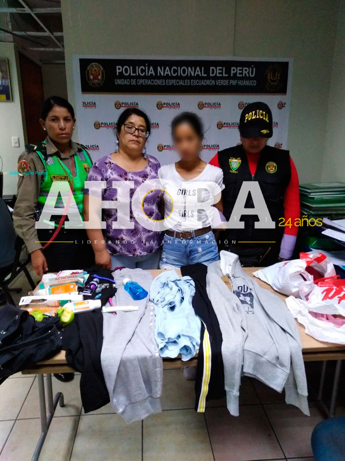 Rosa Elvira Sobrado Gómez (49), alias “Reyna”, y la adolescente de iniciales J. N. P. S. (17), alias “Fashion”, fueron detenidas como presuntas integrantes de la banda criminal “Las Tenderas de Huánuco”, luego de ser sorprendidas hurtando prendas de vestir y otros objetos.