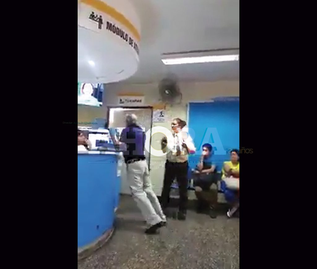Tras realizar este esfuerzo, el asegurado, visiblemente agitado, se apoya en el módulo y es asistido por los presentes, quienes le piden calma y a su vez exigen al personal que le den cita.