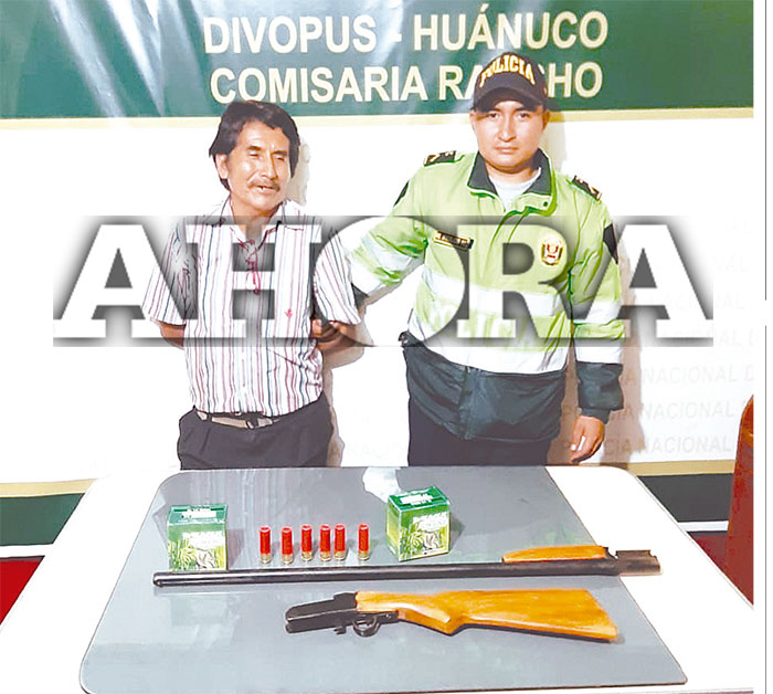 En la comisaría de Rancho, Carretera Central, fue detenido el agricultor Germán Reyes Melgarejo (60) al ser descubierto que transportaba una escopeta de fabricación casera. La intervención ocurrió en el kilómetro 25 de la Carretera Central, ruta Huánuco-Tingo María.