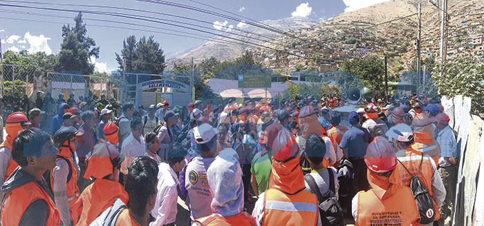 La protesta fue porque el sábado se paralizó la instalación de las redes por falta de arena de cerro para tender las tuberías por problemas en la compra de agregados con S/3.3 millones. Por eso, 75 obreros fueron despedidos, pero esta semana, otro grupo más dejará de trabajar, según anunció el ingeniero residente, Daniel Mallqui, quien además pidió al Ejecutivo gestionar los S/4 millones para pagar a los obreros.