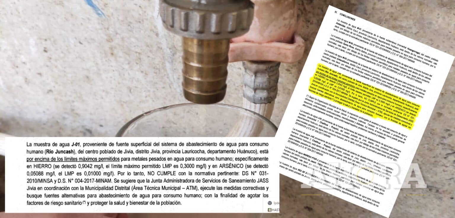 Cientos de personas del centro poblado de Jivia (Lauricocha) vienen consumiendo agua diariamente no apta para el consumo humano. Así lo confirmó un nuevo informe del laboratorio “Servicios Analíticos Generales”, acreditado por el Instituto Nacional de Calidad (Inacal). Según el informe, las muestras de laboratorio del río Juncash arrojaron que el agua potable sobrepasa los … Sigue leyendo ¡Alarmante! Pobladores del C.P. Jivia estarían consumiendo agua no apta para el consumo humano