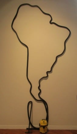 Sacarle a esa basura tecnológica el toque poético donde no todo espectador podrá asentir, para muchos será solamente tomadura de pelo, pero estando frente a ese mapa de Sudamérica, construido/ dibujado con la manguera de un aspirador (Vacuum cleaner, Latinoamérica – Aspiradora) cambia cualquier idea previa que te haya llevado a la muestra. Una perfecta simbiosis con la pared, en sus palabras: mi trabajo se caracteriza por el uso y continuo desplazamiento de diversos medios y materiales (…) en donde el tiempo, la historia del objeto cobran una importancia fundamental en el discurso plástico y en su proceso.