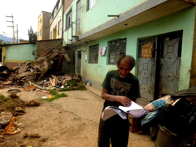 Dedicado al reciclaje de plásticos, envases, neumáticos en desuso, vidrios, chatarra, el anciano realiza sus actividades cotidianas ante la mirada de algunos de sus vecinos, que lo apoyan con lo que pueden, aunque no faltan otros vecinos que exigen que se le retire del área argumentando que esta actividad trae consigo contaminación, roedores, malos olores y hasta perros vagos.