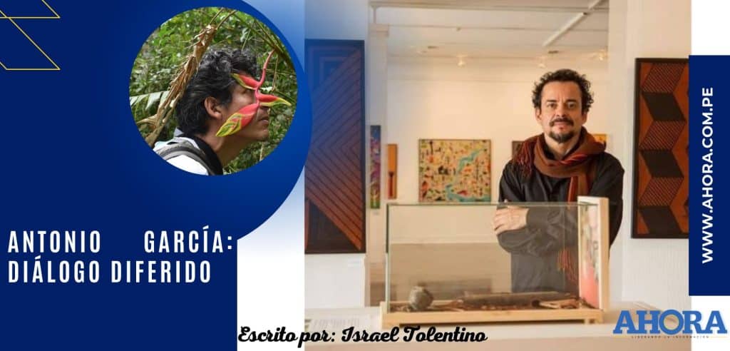 Antonio García, es un artista visual, desde hace muchos años con afinidad por lo amazónico, ha encontrado en ese intercambio: smog por oxígeno, oxigenación para su vida y su arte, sus coqueteos con la yacumama le ha dado otras posibilidades de fructificar su visualidad, de encontrarse más allá de su ciudad de panza de burro, de saborear el verde de la clorofila, hallar los tintes naturales, adentrarse o descubrir otros campos de vigor. Transitar de Lima a la selva sin pasar por los andes es imposible, es en ese paso atrapado por el macizo andino, precisamente en uno de los espacios decisivos en el inicio de la civilización. Del Rimac al Ucayali y de este al Mosna y Huacheqsa, los linderos de Chavín, el complejo arqueológico arquetípico en el advenimiento de la civilización andina.