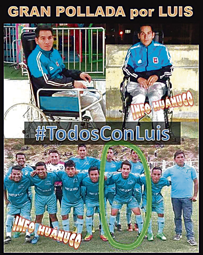 Necesita dinero para su tratamiento y rehabilitación, ya que diariamente hace terapia física especializada y próximamente tiene que viajar a Lima a someterse a una intervención quirúrgica, todo lo cual es muy costoso y por eso apela a la solidaridad de toda la gente ligada al fútbol huanuqueño a fin que lo apoyen adquiriendo una tarjeta de la pollada al precio simbólico de S/10. Anticipadamente expresa su agradecimiento a todos.