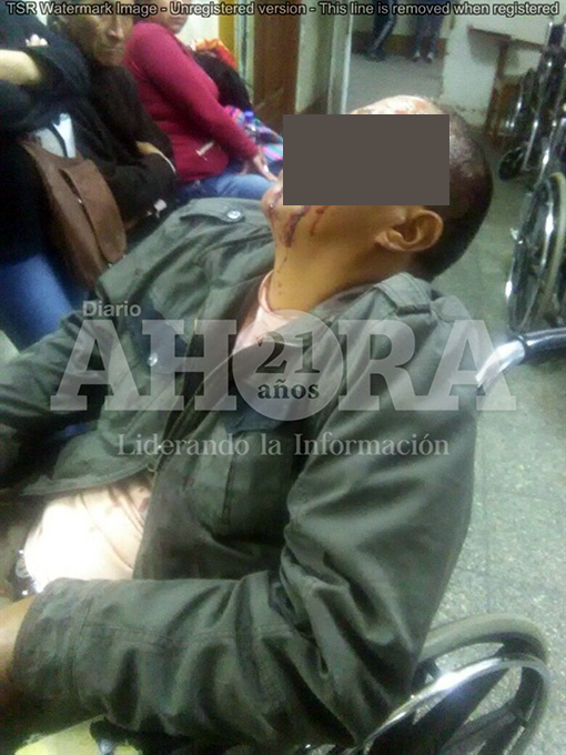 Cerca de las doce de la noche, Víctor Simón ingresó de emergencia al nosocomio regional sangrando por una herida cortante en el rostro y con hematomas en la cabeza. Quedó en observación a fin de evitar complicaciones.