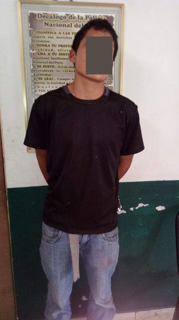 Asimismo, en el lugar se encontraba el menor agraviado quien presentaba un hematoma de gran tamaño en el pómulo derecho y manifestó a la policía que el sujeto arrestado era uno de los malhechores que lo golpearon tratando de asaltarlo.