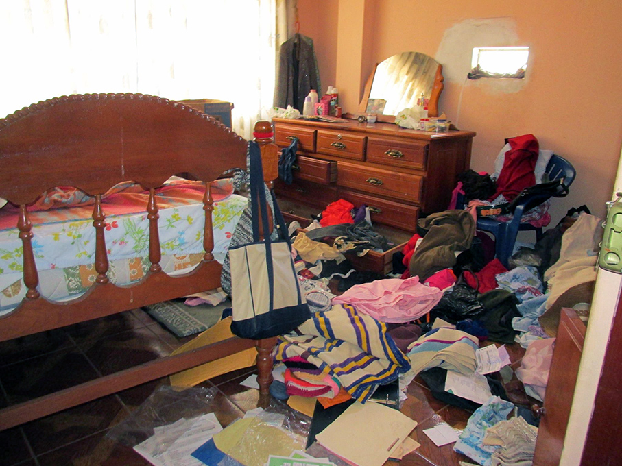 María fue brutalmente golpeada y maniatada de manos y pies con unas soguillas y le taparon la boca con cinta embalaje, además la tuvieron secuestrada en su inmueble por un lapso de 40 minutos. Casi una hora después pudo liberarse.