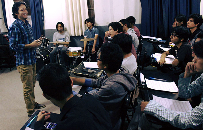 De esta forma culminará el curso-taller de jazz realizado en las instalaciones del Instituto Superior de Música Daniel Alomía Robles, donde el maestro Hugo Alcázar, percusionista peruano de talla internacional nominado al “Grammy Awards 2010”, desarrolló una clase magistral vía skype, propiciando el interés de los jóvenes huanuqueños.