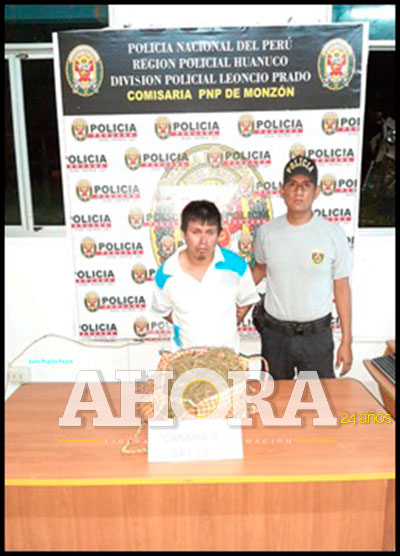 Luego de un paciente seguimiento, policías de la comisaría de Monzón detuvieron al agricultor Jilder Meléndez Morales (32), cuando se desplazaba por el jirón Colonial s/n llevando dentro de una bolsa plástica, hojas y semillas secas de marihuana.