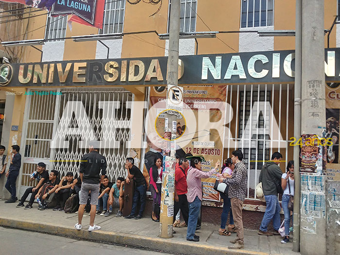 Intempestiva y abusivamente se cerraron las puertas del local central de la Universidad Nacional Daniel Alomía Robles, por orden de las autoridades de la Comisión Organizadora, representados en este acto por la secretaria general, informó Marco Galarza Silva, representante de los estudiantes universitarios.