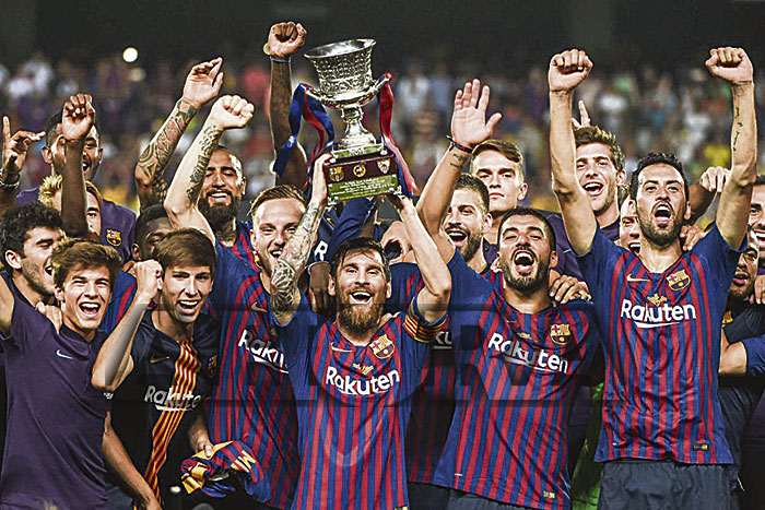El campeón de La Liga y de la Copa, el Barcelona, también ganó la Supercopa ante un duro Sevilla por 2-1 en Tánger (Marruecos). Los azulgranas, liderados por un gran Messi, tuvieron que remontar el gol inicial de Sarabia. Piqué, antes del descanso, y Dembélé con un golazo, se encargaron de culminar el triunfo, que aseguró Ter Stegen parando un penal ya en el descuento.