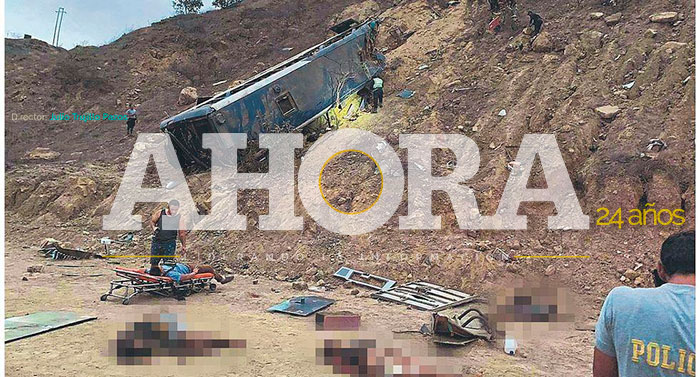 El jefe de la policía de carreteras, coronel Erlyn Silva, dijo a The Associated Press que el bus de la empresa Divino Niño, de matrícula ecuatoriana, retornaba a Guayaquil con hinchas que asistieron el jueves en Lima al partido por la Copa Libertadores entre Barcelona SC y el peruano Sporting Cristal.