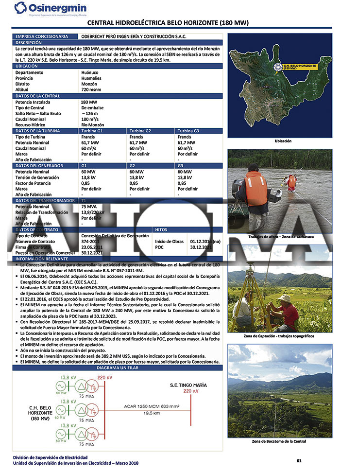 El consorcio de dos empresas chinas: Zhong Hong International Engineering Construction Co. Ltda y China Rainbow International Investment Co, está encargado del reinicio de los estudios técnicos del proyecto de la Central Hidroeléctrica Belo Horizonte, distrito de Monzón, provincia de Huamalíes.