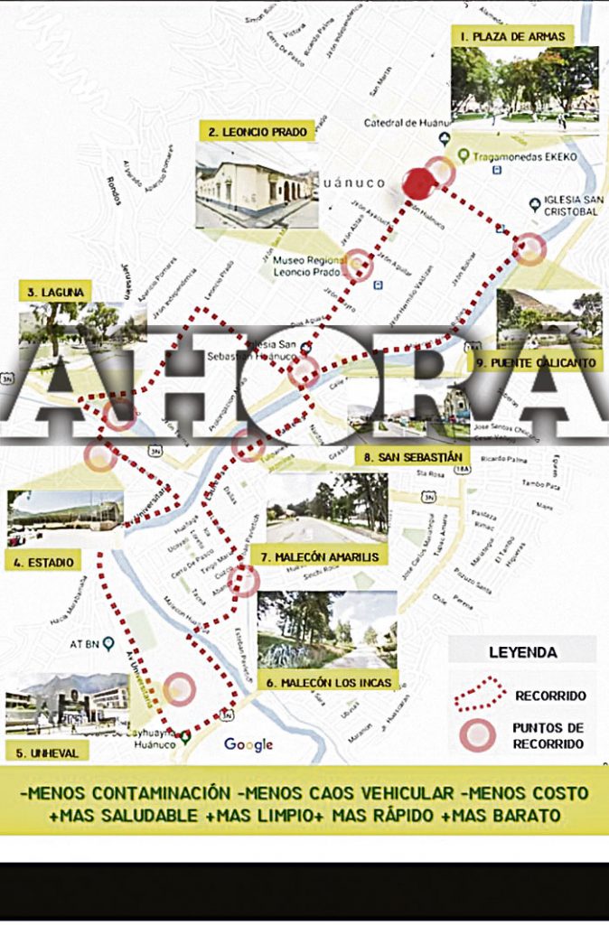 La denominada Eco Bici Caravana recorrerá en bicicleta los distritos de Pillco Marca y Amarilis y Huánuco, con punto partida en la Plaza Mayor de Huánuco, con tránsito por la ciudad universitaria de Cayhuayna y las calles de Paucarbamba, como el mejor modo de reivindicar el uso de medios de transporte que respeten el medio ambiente y estimulen la realización de actividades saludables.