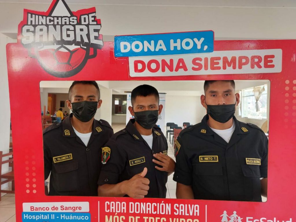 Alumnos de la Escuela Superior Técnico Policial de Santa María del Valle donaron 34 unidades de sangre, durante la primera campaña de donación voluntaria, realizada por el hospital EsSalud de Huánuco.