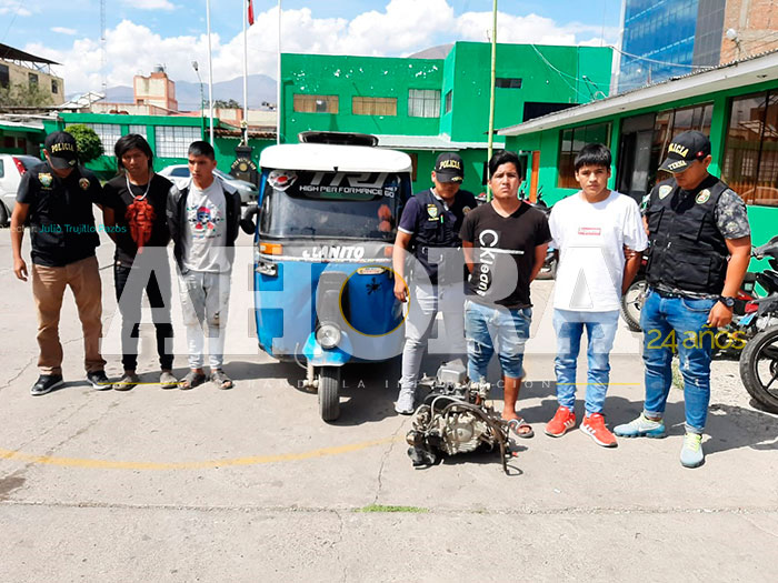 Palermo Kevin Rojas Genes (19), Julio Miguel Fermín Ramos (19), Yuer Maylle Yauri (21) y Edelvino Rogel Gómez Ventura (24), fueron capturados por agentes del grupo Terna, cuando extorsionaban al mototaxista Broceler Ventura Jara (24).