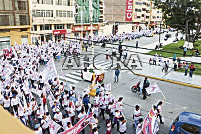 Una caminata realizaron por las calles de Huánuco los candidatos de Avanza País, encabezados por el aspirante al sillón del Gobierno Regional, Rosalí Leandro “Shapra”.