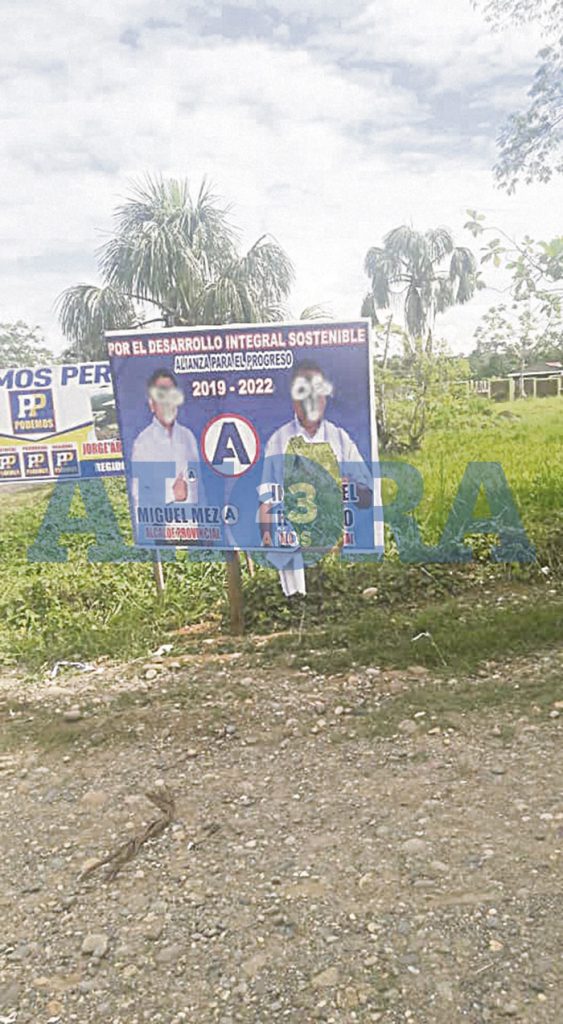 Ronel Hidalgo Huertas, candidato a la Municipalidad de Luyando, Leoncio Prado, denunció que en días anteriores varios de sus gigantografías fueron rotas.