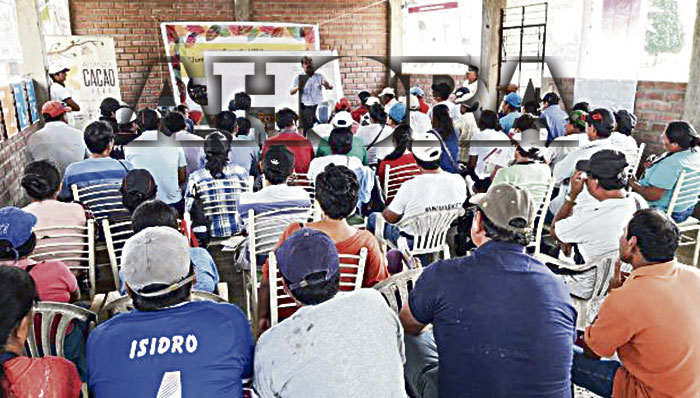 Las capacitaciones a los cacaoteros están a cargo del especialista en suelos, Ing. José Sánchez Escalante, quien detalla la importancia de la nutrición de suelos, la necesidad de invertir en las parcelas de cacao y en elaborar un plan de abonamiento de 3 aplicaciones al año según el tipo de suelo