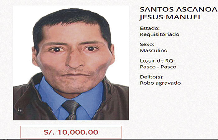 Un sujeto que estaba incluido en la lista de los más buscados por el delito de robo agravado fue capturado en el distrito de Ninacaca. Se trata de Jesús Manuel Santos Ascanoa (50), cuyo nombre figuraba en el Programa de Recompensas “Que ellos se cuiden” del Ministerio del Interior.