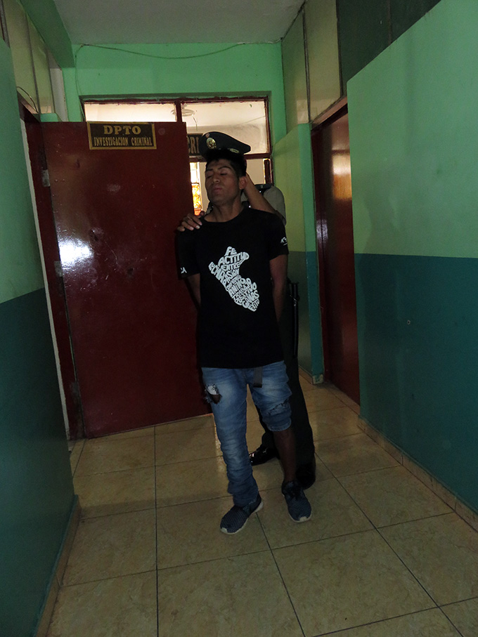 Las agraviadas corrieron tras el delincuente solicitando ayuda, al llegar a los jirones Abtao y Seichi Izumi, un transeúnte derribó al delincuente con una tranca con los pies y, en esos instantes, se hicieron presentes policías de Patrullaje a Pie (Patpie), que resguardaban el lugar, y lo detuvieron.