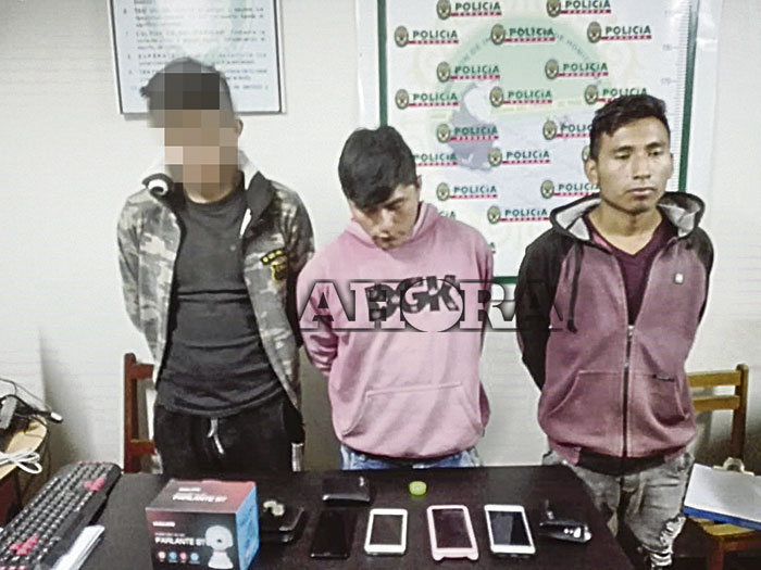 Alberto Resurrección Sebastián (24), Nazario Silva Llanos y el menor C. S. T. (17) fueron detenidos acusados de cogotear y despojar de su teléfono celular a Jordi Jesús Cámac Riva (25). El hecho delictivo ocurrió ayer a las 2 de la madrugada en la intersección de los jirones 28 de Julio y la Alameda de La República.