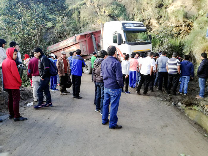 Mientras tanto policías de Carreteras de La Unión con ayuda de algunos pobladores hasta el cierre de la presente edición realizaban denodados esfuerzos para sacar el pesado vehículo a fin de liberar el pase.