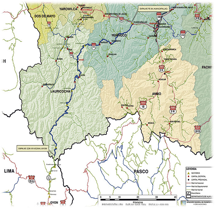 Según se conoce, la distancia que se recorre desde Huánuco a Higueras es de 15 km, de Higueras hasta Oyón 162 km, todo este tramo se cumple en una carretera de tipo afirmado, mientras de Oyón a Lima son 225 km en un tramo totalmente asfaltado. Esta ruta se puede cubrir en ocho o nueve horas de viaje.