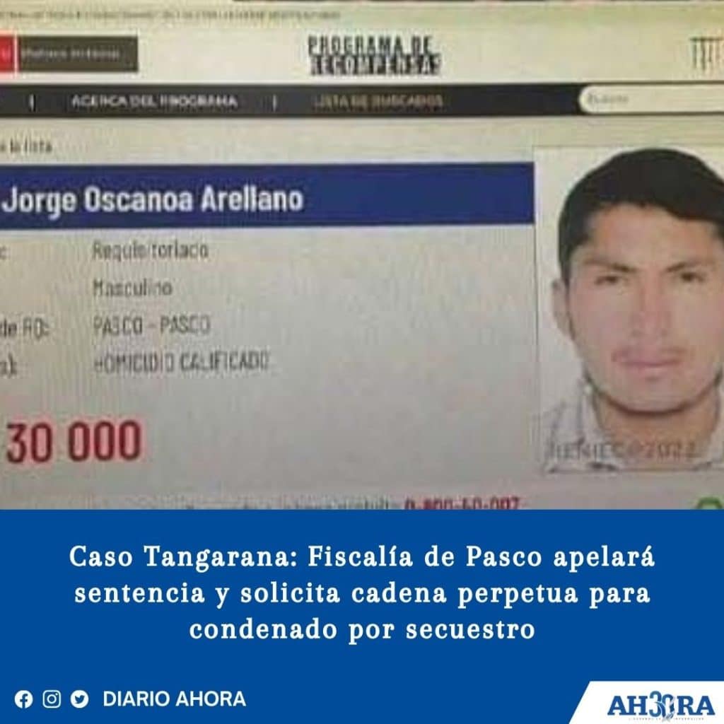 Caso Tangarana: Fiscalía de Pasco apelará sentencia y solicita cadena perpetua para condenado por secuestro