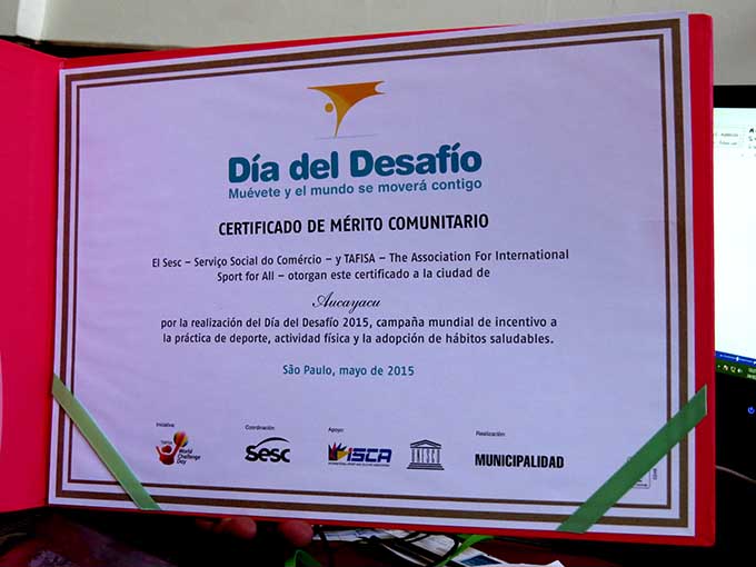 Las organizaciones mundiales, Servicio Social de Comercio y la Asociación Internacional Deporte para Todos, están entregando certificados de mérito comunitario…