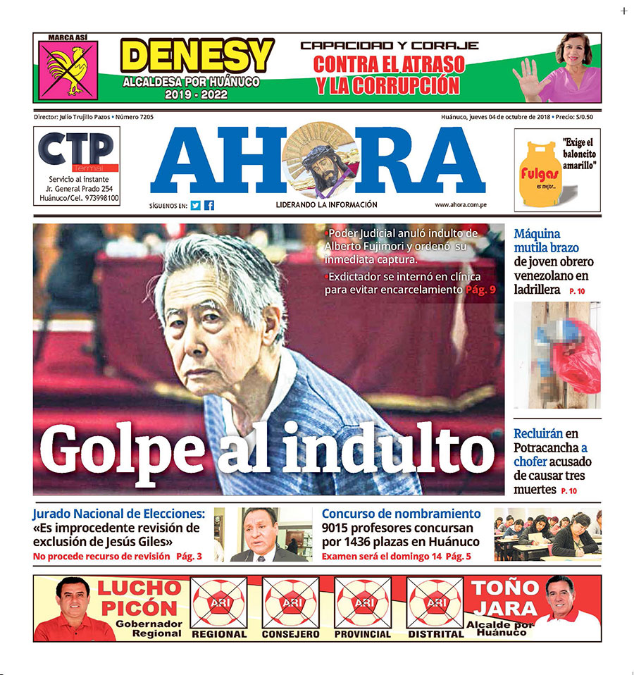 https://issuu.com/diarioahorahuanuco/docs/edici_n_digital_diario_ahora_05.10. Edición Digital Diario Ahora. Viernes, 05 de noviembre de 2018