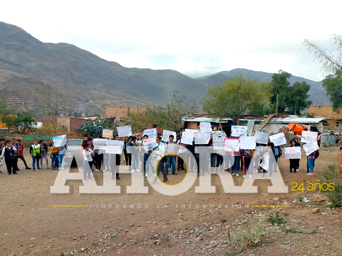 La comunidad educativa del Centro de Educación Básica Alternativa “Marino Meza Rosales”, conformada por 14 docentes y más de 300 estudiantes, se movilizó con pancartas hasta el terreno ubicado en Llicua Baja para exigir el retiro de un invasor que se ha posesionado de 304.09 metros cuadrados de propiedad del colegio, informó el director de la institución educativa, profesor José Luis Aquino Gómez.