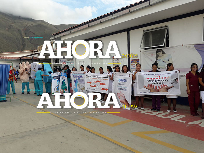 El día de ayer se realizó un pasacalle en el frontis del hospital, para difundir la importancia de lavarse las manos; también hubo una marcha en los diferentes servicios asistenciales del nosocomio ejecutado por internos del Servicio de Obstetricia y del departamento de Enfermería, quienes se hicieron presentes con un sketch que expresaba la importancia de los 11 pasos y 5 momentos del lavado de manos para la atención del paciente.