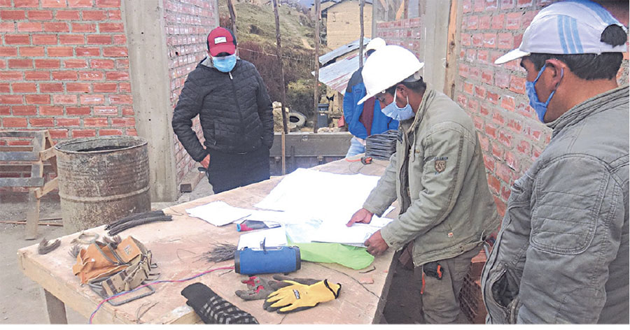 El alcalde, regidores, equipo técnico y autoridades de Jarpo inspeccionaron los ambientes de la infraestructura en construcción, con el fin de garantizar una buena obra para esta localidad.