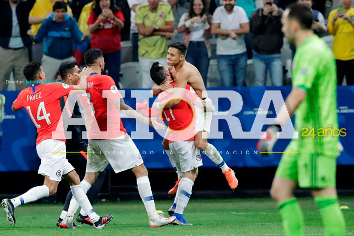 En los penales ambas selecciones acertaron los 4 primeros, pero en el quinto, Tesillo de Colombia la mandó fuera y todo se definió en los pies de Alexis Sánchez quien anotó sin problemas y dio el triunfo a Chile.