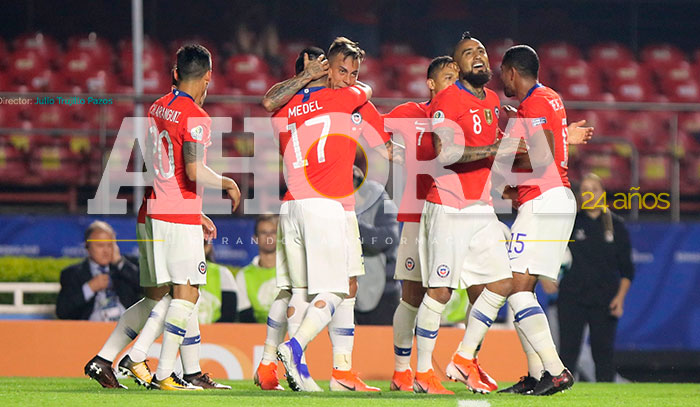 Arrancó el partido y Japón demostraba un equipo juvenil con mucha velocidad, dinamismo y colectividad; por otra parte, Chile apelaba al ordenamiento táctico y a los contra ataques, Japón dominó los primeros 15 minutos de juego y luego Chile fue el dominador de todo el primer tiempo, hasta que a los 41 minutos apareció el primero de la noche en el Morumbí, un ¨soberbio¨ cabezazo de Pulgar y nada pudo hacer el portero Osako, con el 1 a 0 se fueron ambos equipos al descanso.