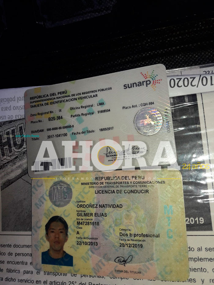 Gilmer Elías Ordoñez Natividad a través de una carta dio a conocer que el sujeto habría presentado su licencia de conducir, que en marzo le robaron durante un asalto ocurrido en la curva en el caserío de Pavina, cuando se dirigía de Rancho a Tambillo.