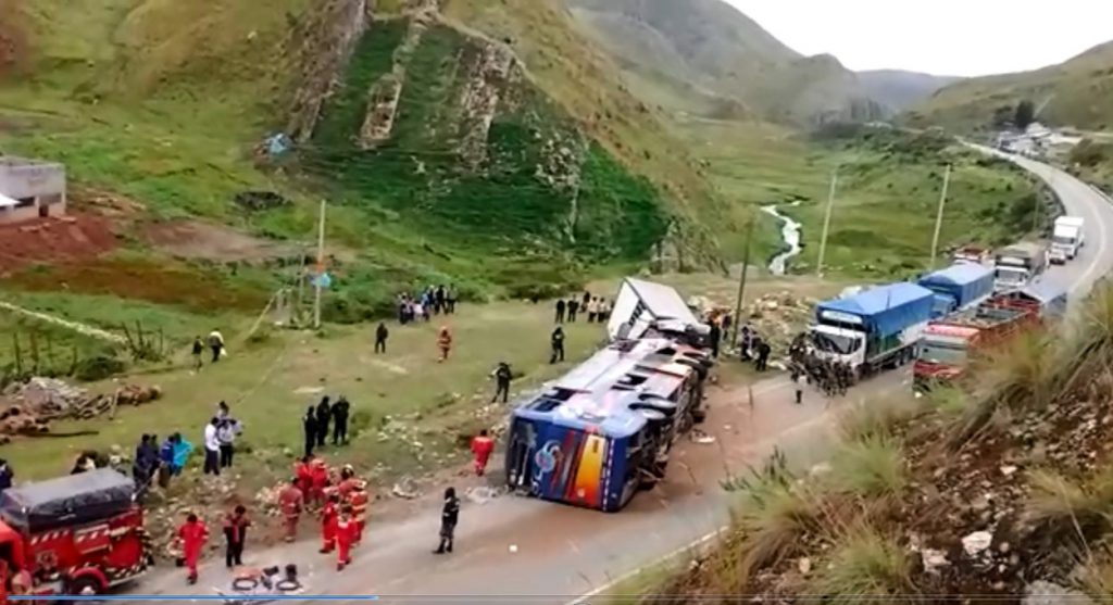 El choque frontal entre un camión de carga y un ómnibus que venía de Huancayo a Huánuco con 50 pasajeros a bordo, dejó como saldo 10 muertos y más de 34 heridos. El nuevo accidente de tránsito que enluta familias peruanas ocurrió ayer a las 5:30 de la mañana en el kilómetro 134 + 800 de la carretera La Oroya-Huánuco en la zona de Pariamarca, Pasco.