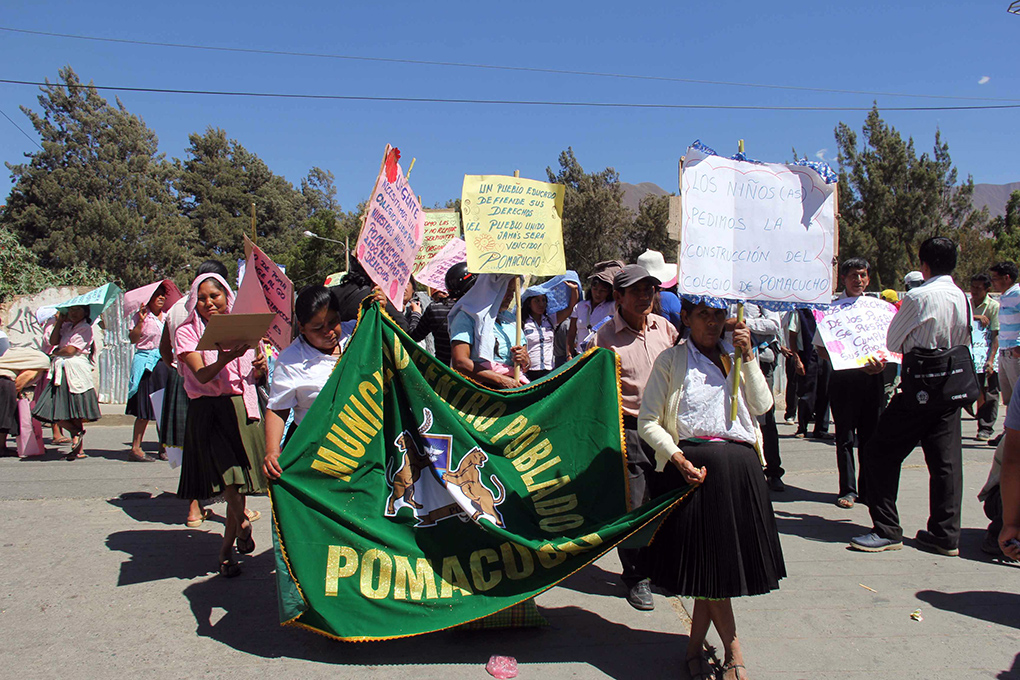 Indignados padres de familia de la I. E. José Contreras Cabrera del centro poblado de Pomacucho (distrito de Santa María del Valle) se apostaron ayer en el frontis de la sede del Gobierno Regional exigiendo al gobernador Rubén Alva, construya la nueva infraestructura educativa, proyecto que se gestó durante en el periodo del exgobernador regional Jorge Espinoza Egoávil con un presupuesto de 4 millones de soles. A la fecha, las autoridades no le dan prioridad para su ejecución y más de 450 alumnos siguen estudiando en viviendas rústicas.