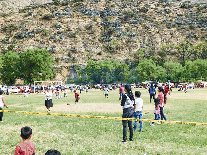 Para el partido, alrededor del campo colocaron una cinta plástica para delimitarlo y personal de las rondas se encargó de cuidar que la gente no se meta al campo.