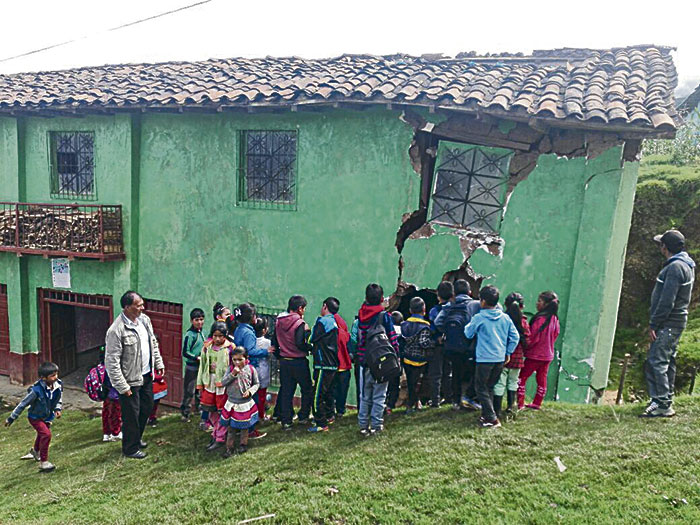 A las tres de la madrugada de ayer, pobladores del caserío San Juan de Huaripampa, del distrito de Canchabamba, provincia de Huacaybamba, despertaron alertados por fuertes ruidos que provenían de la Institución Educativa n.° 32967, cuya vetusta infraestructura había sido declarada en emergencia. Pobladores y profesores se trasladaron al local para rescatar un poco del mobiliario escolar, pupitres, pizarras, materiales educativos y otros enseres, informó desde el lugar de los hechos, el profesor Artemio Benites Maylle, director de la referida escuela.