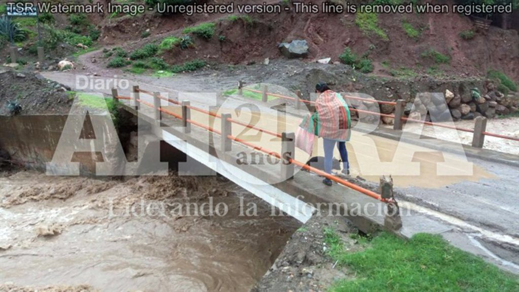 Las persistentes y torrenciales lluvias que han caído en los últimos días sobre Huacrachuco, capital de la provincia de Marañón han traído consigo el colapso de las bases de un puente que une el barrio Santa Rosa con el camal municipal y continua poniendo en riesgo la infraestructura del mercado, la Institución Educativa de Primaria N° 84045 e incluso la carretera Huacrachuco-Quillabamba, cuya plataforma se encuentra muy erosionada, lo que ha dejado a la población en zozobra porque en cualquier momento se pueden producir daños en del barrio Santa Rosa, aseguró Franklin Salazar Rodríguez, consejero regional de Marañón. Indicó que las lluvias han disminuido los últimos cuatro días, pero se anuncian que en los siguientes días nuevamente lloverá e incrementará el caudal del río Huacrachuco con el riesgo de desbordes y probables desastres.