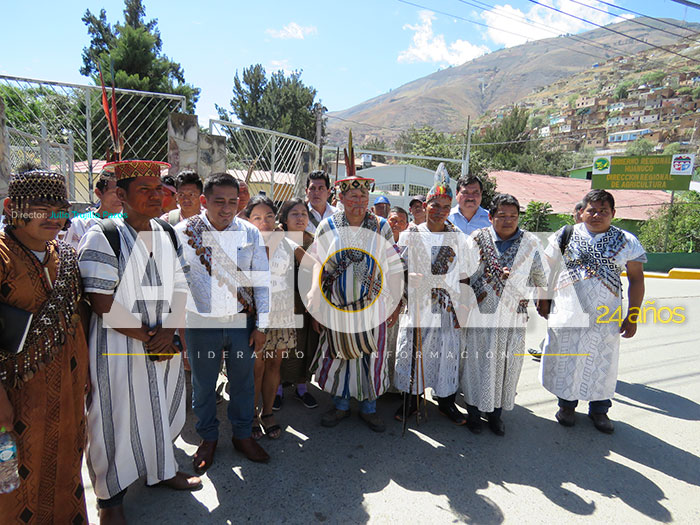 Los líderes de las comunidades nativas Dos Unidos, Unipacuyacu, Nueva Austria, Puerto Nuevo y Sinchi Roca, llegaron acompañados del alcalde de Puerto Inca, Hilter Rivera Bahoman.