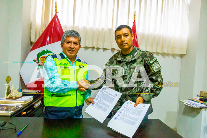 El alcalde del distrito, Antonio Pulgar Lucas, firmó el convenio con el comandante EP Alexis Rodríguez Castillo, quien llegó desde La Merced, para gestionar el apoyo en la ejecución de proyectos, como el mejoramiento del servicio vial urbano en la prolongación Los Girasoles y la avenida Los Girasoles; principales accesos del distrito.