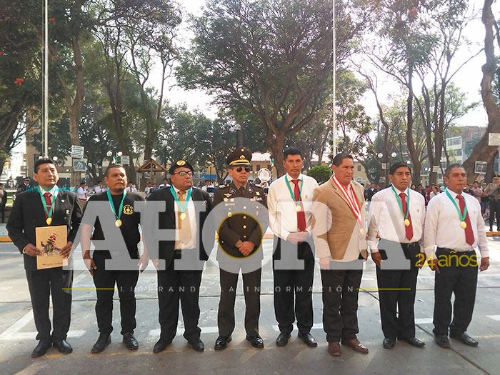En ceremonia pública cumplida ayer en la Plaza Mayor, el gobernador Juan Alvarado Cornelio condecoró a los miembros de las Fuerzas Armadas que lucharon en la guerra interna contra el terrorismo que afectó al país entre 1980 y 2000, expresó Irwin Berríos Pariona, presidente de la Asociación Nacional de Combatientes de la Guerra Contrasubversiva sargento E.P. Rober Delgado Viera”. Agradeció que el gobierno regional sea el primero en el país en reconocerles mediante una resolución, además de entregarles una medalla conmemorativa, lo que es simbólico pero importante para sus integrantes.