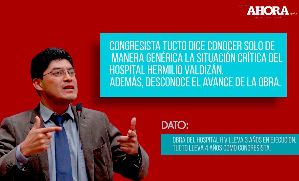 Al ser consultado sobre la problemática en la construcción del Hospital Regional Hermilio Valdizán, el congresista Rogelio Tucto dio claras luces que no está enterado del problema y de la posible paralización de la obra.